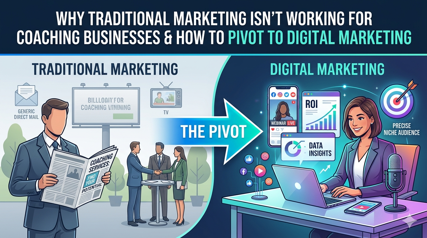 Why Traditional Marketing Isn’t Working for Coaching Businesses & How to Pivot to Digital Marketing Ever wondered why your coaching business isn’t growing as fast